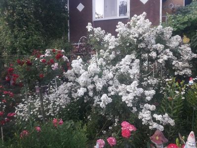 In acest an am cosiderat ca cel mai mare efect l au avut trandafirii albi.Sunt 4 trandafiri destul de bine cotati si premiati si anume.1.GUIRLANDE DE AMOR. 2.SALLY HOLMES. 3.MIDSUMMER SNOW 4.HELLA. Dar totusi in mod special l as remarca pe Guirlande care a fost magistral,imperial la prima inflorire care a durat aproape trei saptamani. In incheiere vreau sa specific din punctul meu de vedere orice pata de culoare alba dintr-o gradina are un farmec aparte.