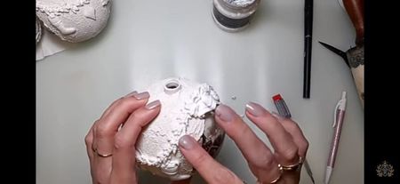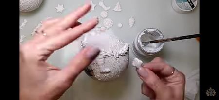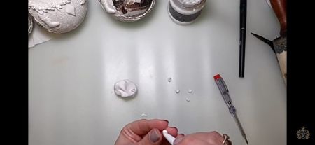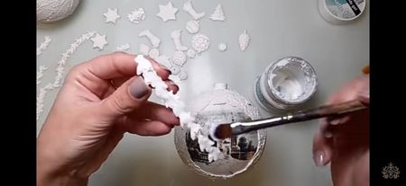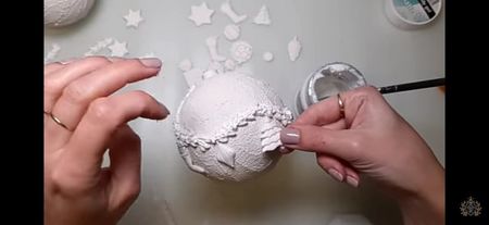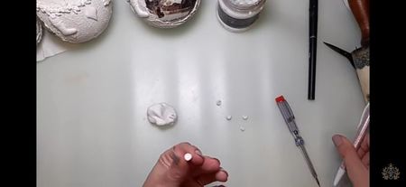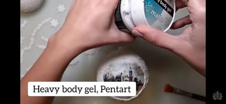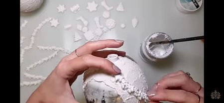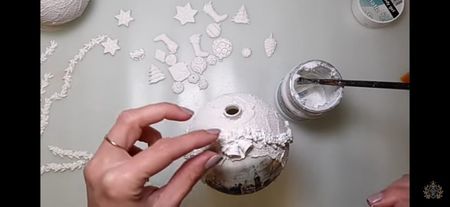 Glob de plastic rotund de 10 cm cu capacele Șmirghel 400 Pensula pentru primer Acrylic primar Rice paper ITD Collection Mod ponge glue Pensula pentru lipici Pasta de structura Unealta de întins pasta de structura Heavy body gel Matrita Pix Pensula pentru varnish Varnish Acril alb Buretel Patina Șervețel de bumbac Ceara alba sau transparenta Agățătoare????? Prezentare: tava de cupru și un mileu Ambalaj: ???????