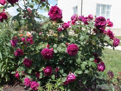 crește la umbră parțială. 3 ani, zona a 4-a Nijni Novgorod. În flori în mod constant, flori de o culoare bogată de vin incomparabilă. Parfum intens foarte puternic. Tufa crește încet și forma este de neînțeles. Nici măcar nu știu cum să formez această întindere)) Există o nuanță - întoarce florile spre soare, pentru mine acest lucru este important, deoarece. s-a dovedit că trandafirul înflorește pe partea opusă ferestrei căreia a fost plantat.