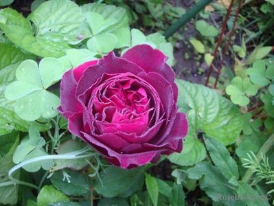 Trandafir de patru ani. Tufișul este destul de înalt, foarte înțepător. Înflorește abundent în fiecare an. Florile sunt foarte întunecate, catifelate (fotografia nu transmite culoarea). Trandafirul nu este capricios. Nu o tai pentru iarnă, nu o așez, o acopăr cu lutrasil în 2 straturi cu o densitate de 60. Trandafirii iernează bine.