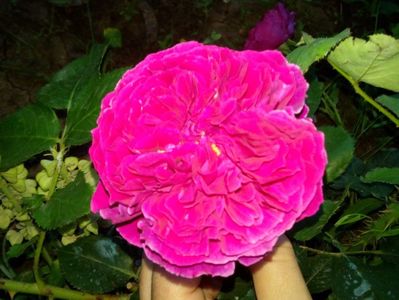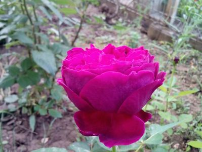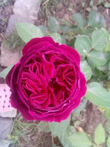 Floare plină, bordo magenta, miros puternic, îl ador.