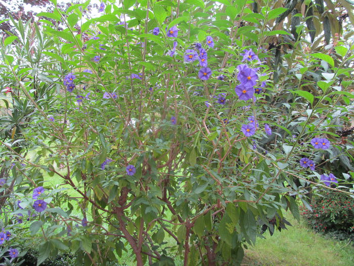arborii au si ei flori ...frunzele....mai prin octombrie....vor fi de toate culorile si formele....pe jos..acu-s verzi...;trandafirul catarator e in gradina cu frunze....sub balconul meu