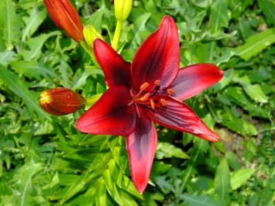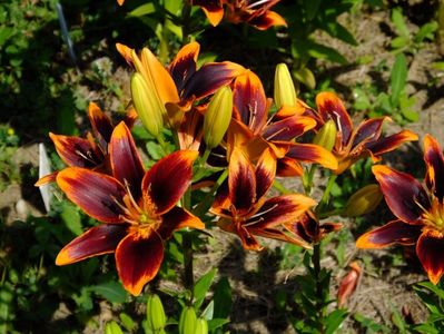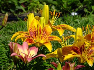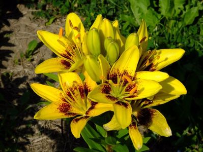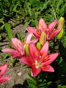 Jumatate din gradina e alocata bulbilor, iar cealalata trandafirilor. Unde avem bulbii fiecare are un desen cu alei pe unde se poate umbla. In fiecare toamna scoatem la ei de ne apuca Craciunul plantand inapoi. :)) Mutam sa facem rotatia culturii. La crini nu umblam asa des, nu le place sa tot fie deranjati. Pana acuma asa aveam doar bulbii pusi in zonele dedicate, pe la anul am in plan sa pun ceva anuale sa mai tina buruienile sub control, dar si sa fie zona mai mult colorata. La bulboasele de primavara nu merge varianta cu anuale, ca deja la sf de mai inceput de iunie incepem la scos bulbii. Dar la crini, irisi si dalii ar merge sa aiba ceva companioni anuali.Aici pe poteci pe unde umblam avem fie pietris in aranjamente, fie "iarba" unde sunt razoare normale, nu ceva desen creat.