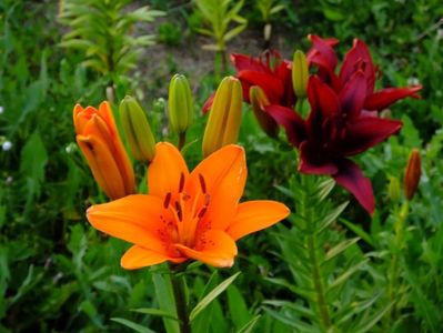Jumatate din gradina e alocata bulbilor, iar cealalata trandafirilor. Unde avem bulbii fiecare are un desen cu alei pe unde se poate umbla. In fiecare toamna scoatem la ei de ne apuca Craciunul plantand inapoi. :)) Mutam sa facem rotatia culturii. La crini nu umblam asa des, nu le place sa tot fie deranjati. Pana acuma asa aveam doar bulbii pusi in zonele dedicate, pe la anul am in plan sa pun ceva anuale sa mai tina buruienile sub control, dar si sa fie zona mai mult colorata. La bulboasele de primavara nu merge varianta cu anuale, ca deja la sf de mai inceput de iunie incepem la scos bulbii. Dar la crini, irisi si dalii ar merge sa aiba ceva companioni anuali.Aici pe poteci pe unde umblam avem fie pietris in aranjamente, fie "iarba" unde sunt razoare normale, nu ceva desen creat.