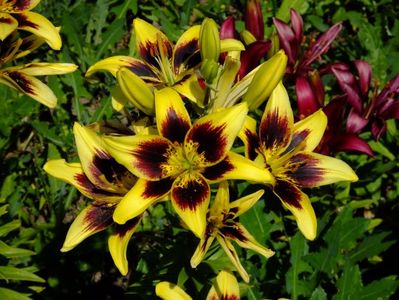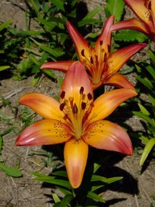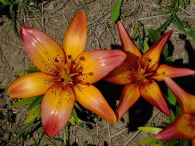 Jumatate din gradina e alocata bulbilor, iar cealalata trandafirilor. Unde avem bulbii fiecare are un desen cu alei pe unde se poate umbla. In fiecare toamna scoatem la ei de ne apuca Craciunul plantand inapoi. :)) Mutam sa facem rotatia culturii. La crini nu umblam asa des, nu le place sa tot fie deranjati. Pana acuma asa aveam doar bulbii pusi in zonele dedicate, pe la anul am in plan sa pun ceva anuale sa mai tina buruienile sub control, dar si sa fie zona mai mult colorata. La bulboasele de primavara nu merge varianta cu anuale, ca deja la sf de mai inceput de iunie incepem la scos bulbii. Dar la crini, irisi si dalii ar merge sa aiba ceva companioni anuali.Aici pe poteci pe unde umblam avem fie pietris in aranjamente, fie "iarba" unde sunt razoare normale, nu ceva desen creat.