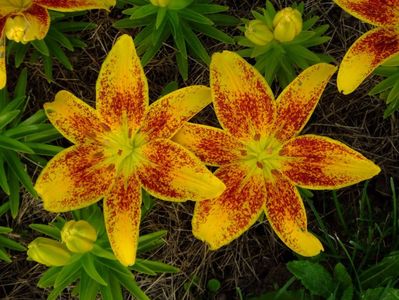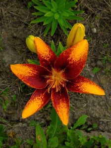 Acest soi il am si eu dar nu face decat flori precum cea galbena cu striatii rosii si flori simple rosii. Cu flori de culoare rosie cu striatii nu m-a onorat niciodata. avagarden.sunphoto.ro/2017_06_Iunie/110095497