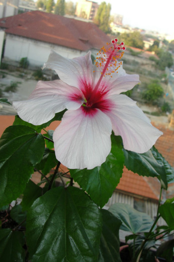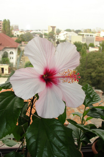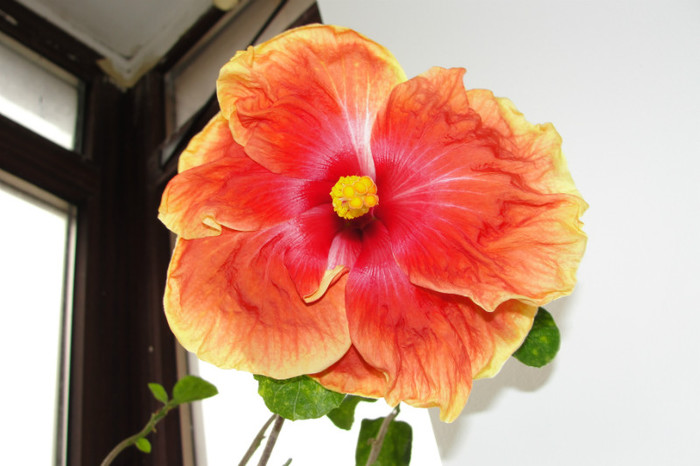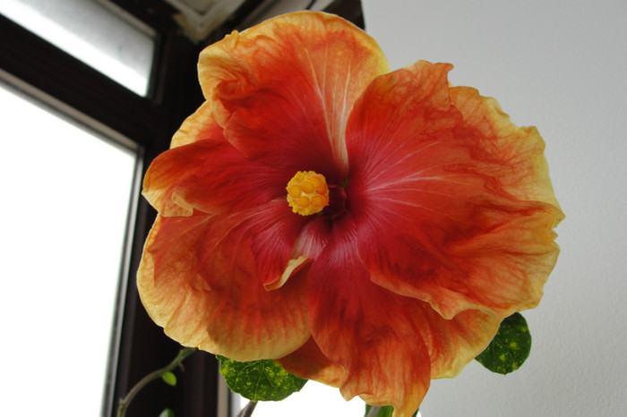 Acest hibi a facut si floare somon dar acum a facut o floare rosie, de aceea am spus ca trebuia sa fie somon !