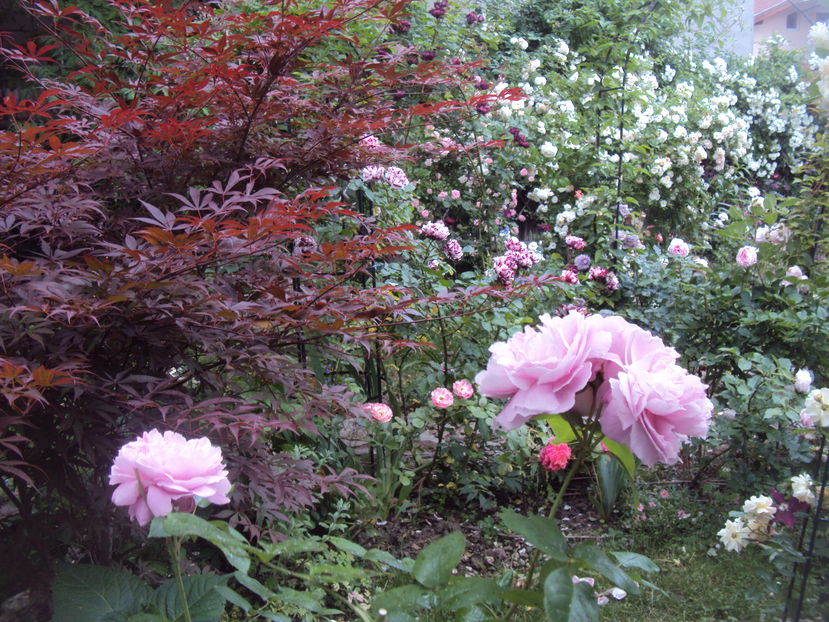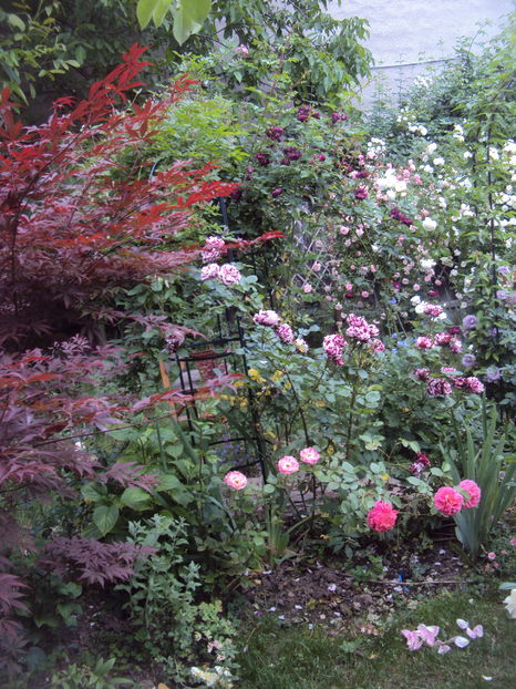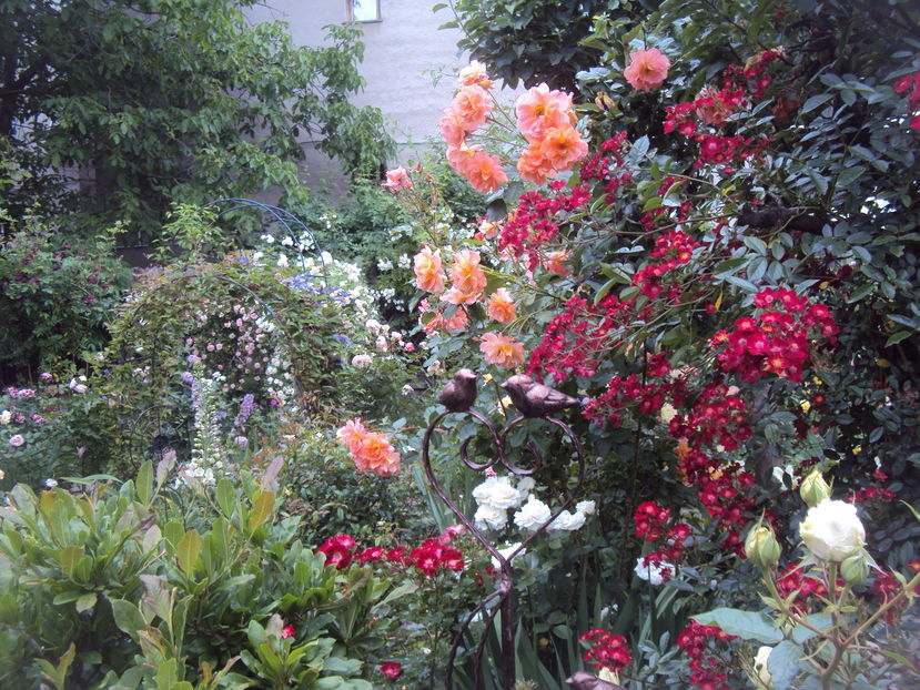 Aveti o gradina deosebita! Imi place mai ales conceptul asta de "dezordine-ordonata". Si..mi-e greu sa inteleg cum ati reusit sa "inghesuiti" atatia trandafiri si alte flori si copacei acolo..fara sa devina "suparati" unii pe ceilalti..Nu prea sunt eu cu epitetele dar daca ar fi sa rezum intr-un cuvant cat de cat plastic (poate si prozaic in acelasi timp) impresia pe care mi-a produs-o plimbarea prin gradina dvs. acesta ar fi un simplu....WOW!