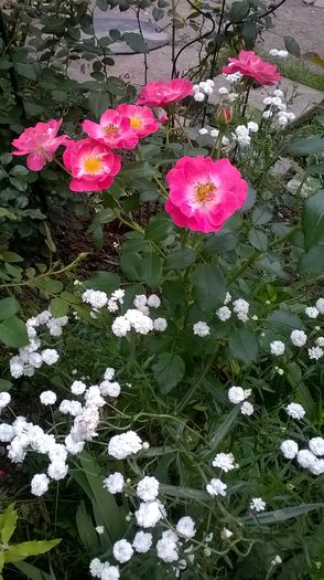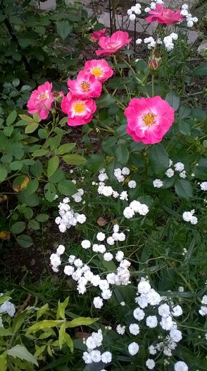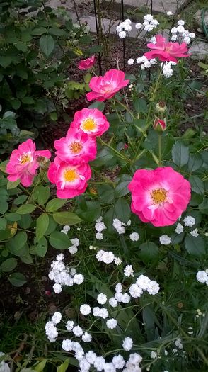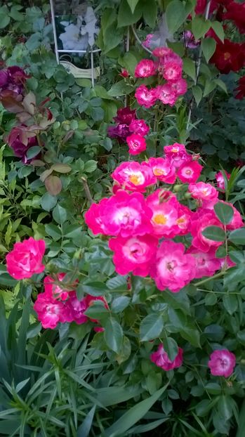 Bred by Alain Meilland (France, 1992). Introduced in France by SNC Meilland in 1992 as 'Magic Meidiland'. Introduced in France by Selection Meilland in 1993 as 'Magic Meidiland'. Polyantha, Shrub. Pink, fuchsia / magenta shading. Mild fragrance. Double (17-25 petals), cluster-flowered bloom form. Blooms in flushes throughout the season. Height of 16" to 47" (40 to 120 cm). Width of 16" to 3' (40 to 90 cm). USDA zone 6b and warmer. Can be used for ground cover. Disease susceptibility: very disease resistant. Spring Pruning: Remove old canes and dead or diseased wood and cut back canes that cross. In warmer climates, cut back the remaining canes by about one-third. In colder areas, you'll probably find you'll have to prune a little more than that. Australia - Application No: 1996/093 on 1996 VIEW PBR PATENT