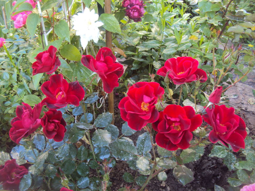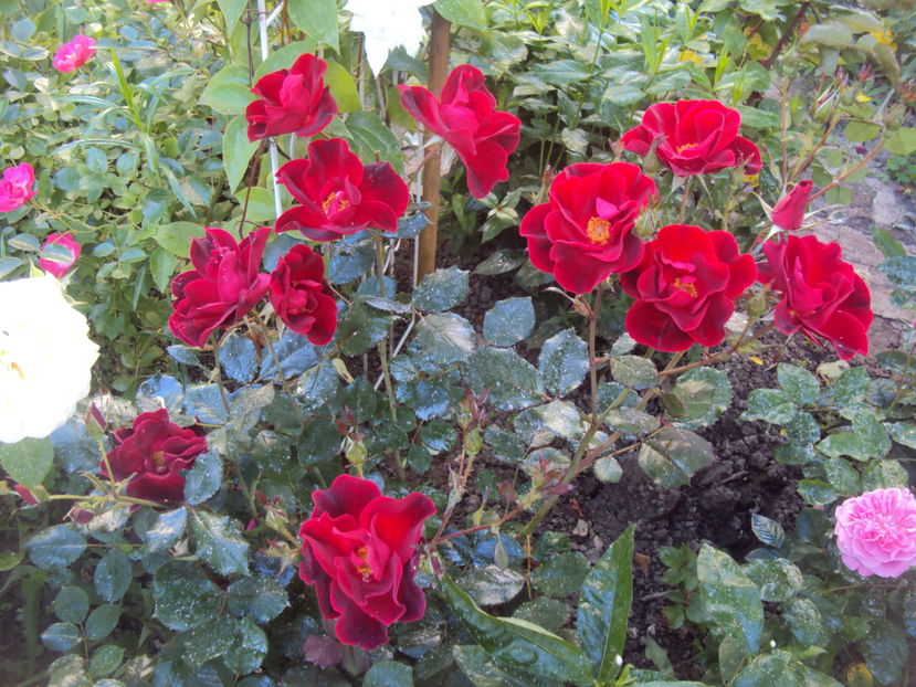 Medium red Shrub. Registration name: Miracle on the Hudson Exhibition name: Miracle on the Hudson Bred by Robert Neil Rippetoe (United States, 2006). Shrub. Red. None to mild fragrance. 5 to 8 petals. Average diameter 3". Medium-large, single (4-8 petals), cluster-flowered, in small clusters bloom form. Prolific, blooms in flushes throughout the season. Medium buds. Medium, armed with thorns / prickles, bushy, compact, mounded, spreading, well-branched. Medium, semi-glossy, dark green, attractive fall color foliage. Height of 3' to 5' (90 to 150 cm). Can be used for beds and borders, container rose, garden, hedge, landscape, rock garden, shrub or specimen. Hardy. vigorous. can be grown as a shrub. heat tolerant. requires full sun for best color. Disease susceptibility: very disease resistant, very blackspot resistant., very mildew resistant. Remove spent blooms to encourage re-bloom. Can be grown in the ground or in a container (container requires winter protection). Can be pruned to maintain a shorter habit. Needs little care; relatively disease-free and quite hardy. Remove spent blooms only.