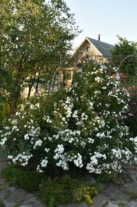 In primul an de plantare trandafirului nu i-a placut deloc. A inflorit cu flori semiduble foarte mici, deja am vrut sa o dau mainilor bune. L-am transplantat pe un deal alpin, astfel încât să nu fie foarte vizibil, dar în al treilea an trandafirul a devenit pur și simplu de nerecunoscut. A înflorit abundent, a crescut un tufiș uriaș, doar un fel de zăpadă, din cauza asta a trebuit să fie plantați unii dintre vecini. Ramurile care erau în contact cu pământul au prins toate rădăcinile, în general, nu un trandafir, ci un agresor. Un trandafir peisaj foarte iubit și fără probleme.