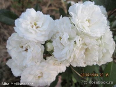 Debutul soiului Alba Meillandecor pe arena internațională s-a dovedit a fi unul fericit și a adus o medalie de aur. Soiul este ideal pentru grădinile albe, este foarte armonios în combinație cu alți arbuști. Florile mici duble albe nu se tem de ploaie, sunt întotdeauna îngrijite și evocă „asocieri de iarnă”, poate pentru că seamănă cu bulgări de zăpadă.