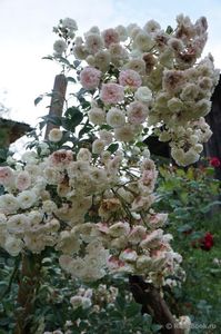 Tufa este tânără, dar a înflorit foarte abundent la început, apoi a fost împodobit cu flori toată vara. Frunziș frumos, dens, sănătos, mic, cu pețioli roșii, lăstari roșiatici. Înflorește în raceme, dar florile sunt foarte mici, aproximativ 1 cm în diametru, dar nu 3-4 cm, așa cum este indicat. Un trandafir peisaj obișnuit, neremarcabil.