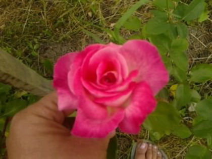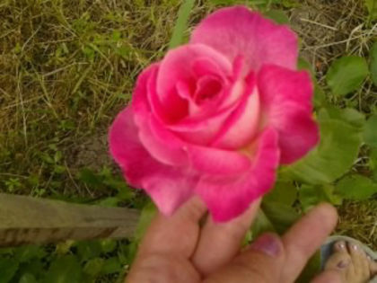 miniroza,nu e chiar mica,creste cam la un m inaltime[asa a fost cumparata ca miniroza la ghiveci],imi place ca are toate culorile uneori..de la galben,portocaliu la rosu..