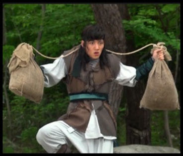 ~.~ Revenind la serial...mi-a placut din primul episod!Episodul 6 a fost episodul de incepul,pentru mine,si a fost de nedescris!I-am cunoscut pe Woon,despre care auzisem multe,iar toate erau adevarate.Imi place foarte,foarte mult de el.Ii sta foarte bine,ca actor in k-dramele istorice.Il prinde genul asta de personaje.Imi place mai mult de el ca Yeo Woon decat ca Chun Chu.Ii sta mai bine ca luptator,decat ca aristocrat.Il admir din ce in ce mai mult^^.Eu una cand il privesc sunt total :P~Trebuie admirat pentru munca lui!Prietenul cu ochelari Cho Rip,foarte amuzant pusti,mai ales cu ochelarii^^Razboinicul nostru,personajul central al acestui serial,Baek Dong Soo,un luptator incepator,destul de bun,dragutz,desigur ca totii tinerii koreeni,si foarte,foarte imatur,gata sa-si dea si hainele dupa el pentru fata iubita.Imi aduce aminte de Iljimae,defapt serialul seamana izbitor de mult cu Iljimae.Personajele sunt asemanatoare.Cei 2 (Iljimae/Baek Dong Soo) arata cam la fel,la fel de imaturi la inceput,dar total schimbati la sfarsit,lupatori excelenti si indragostiti peste cap de o tanara frumoasa,cu care de fiecare data o dau in bara :))Am mai cunoscut-o pe Jin Ju,o luptatoare foarte priceputa la fel ca mama sa.Si,desigur,pe fata care ia fermecat pe cei 2 luptatori ai nostri,calugarita Ji Sun.Acestea ar fi personajele principale ale serialului,personajele mele preferate.